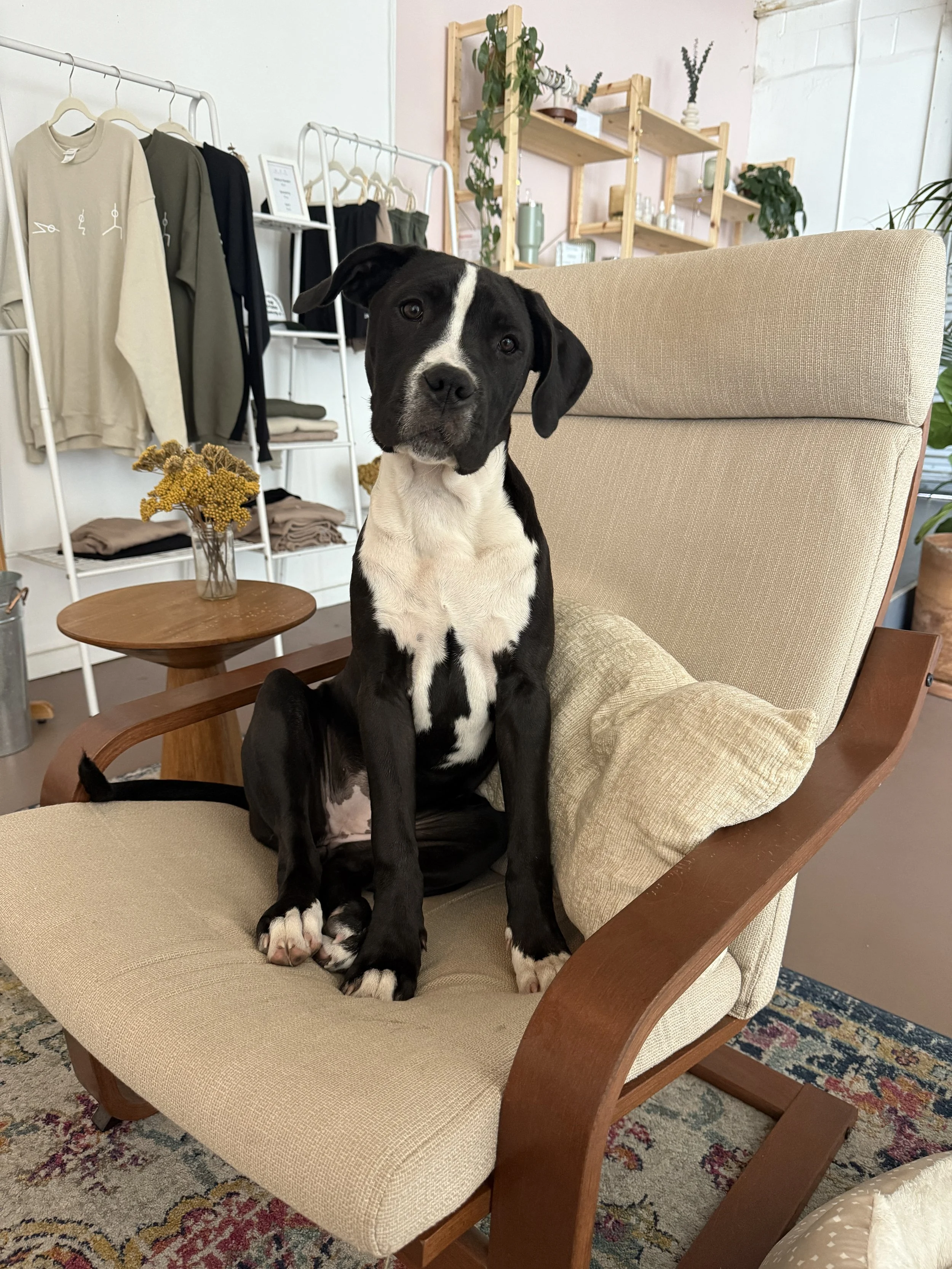 Daisy is a 9month old rescue mega mutt who is as sweet as can be and loves spending afternoons sunbathing in the studio courtyard or napping in the lobby. She’s currently training to be a therapy dog, but the studio is her time off so please feel free to come say hi if you want!